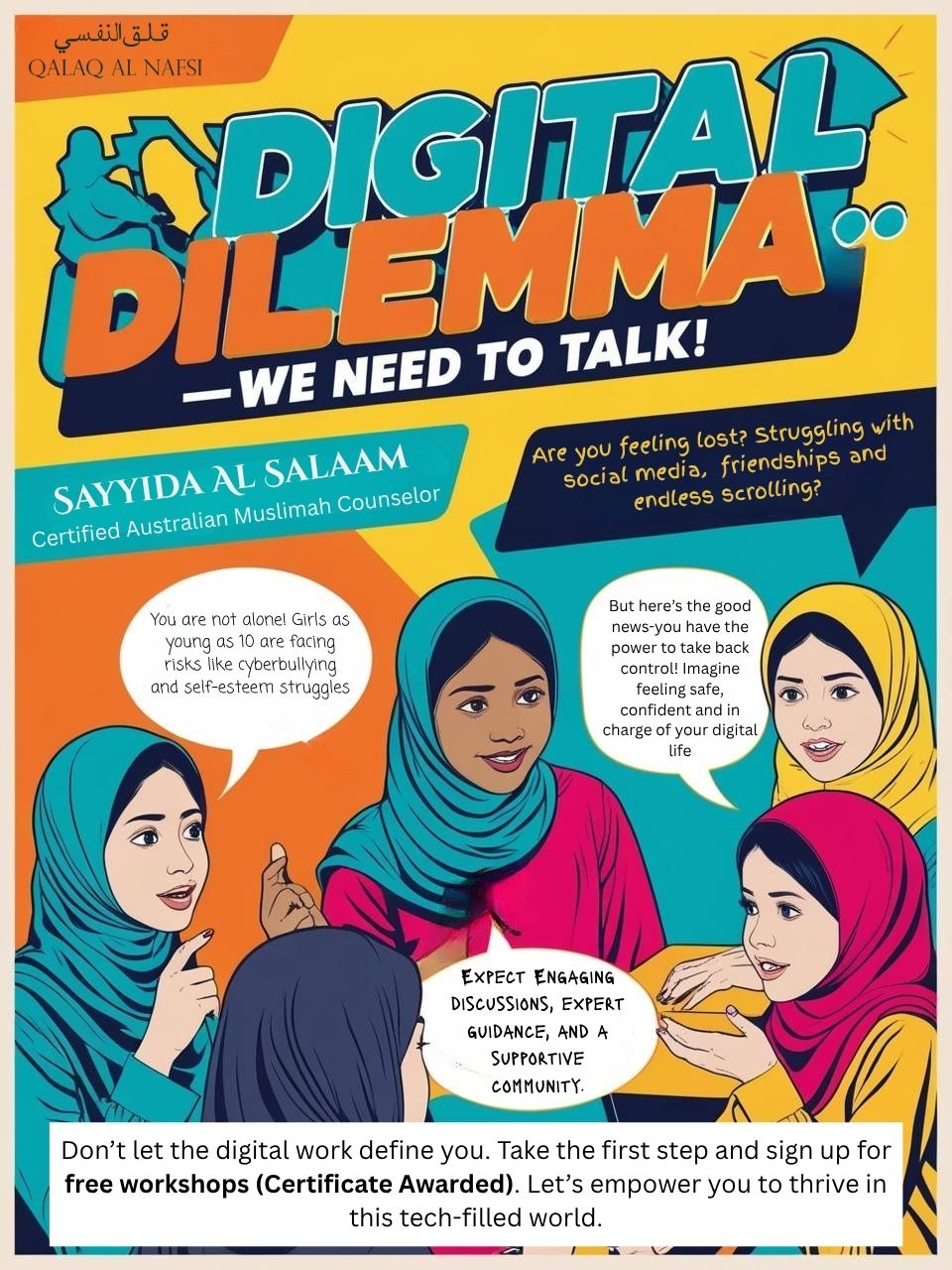 Led by Sayyid Al Salaam, a certified Australian Muslim counselor, the workshop will provide expert guidance on managing the impacts of digital interactions on mental health and self-esteem.